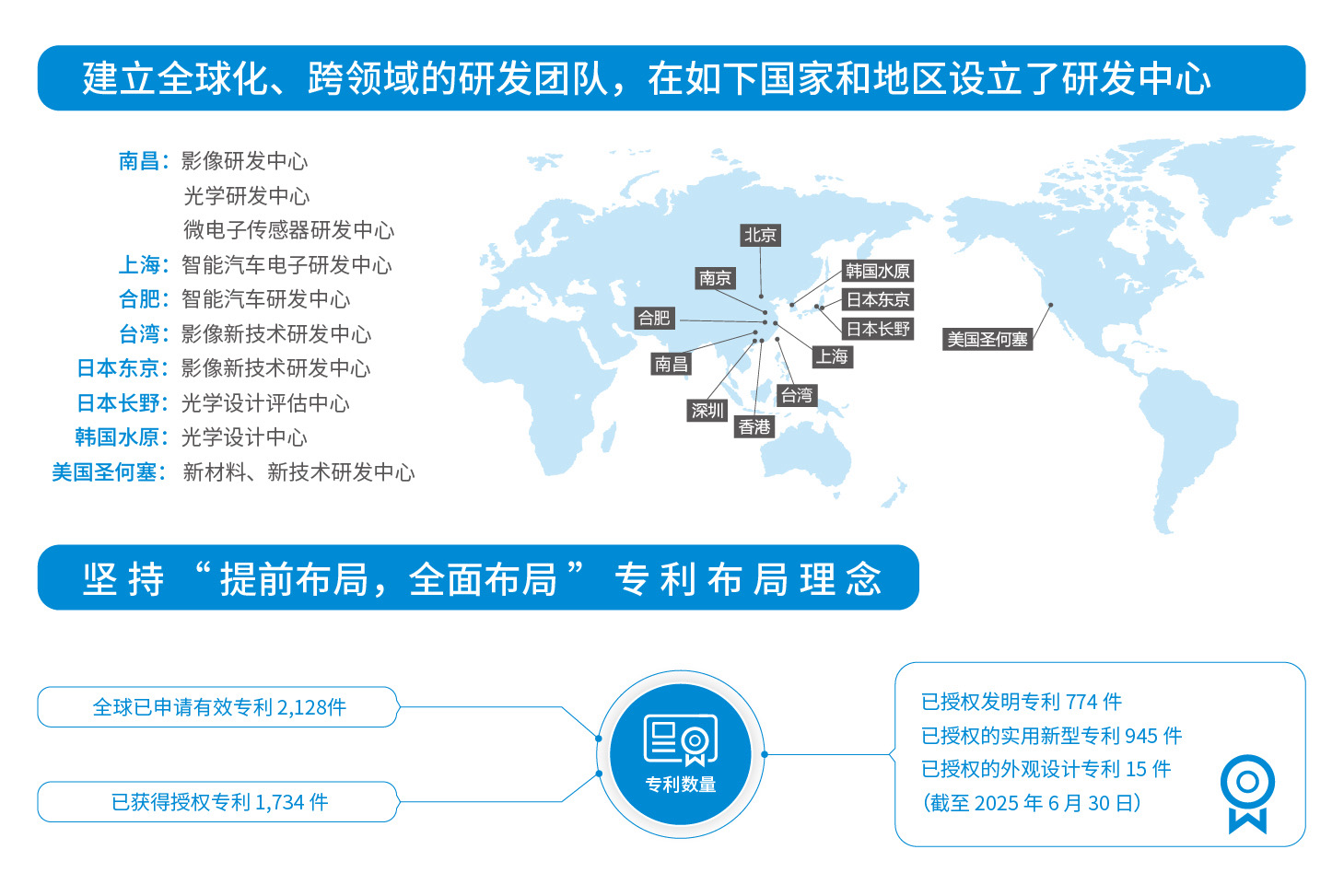 伟德国际1946bv官网坚持“以技术为导向、以创新为驱动”的业务模式,2025 年半年度,研发投入达到 7.58 亿元,占营业收入比重为 7.70%。在中国、美国、日本、韩国等地均建立了创新研发中心,建立起了全球化、跨领域的研发团队。